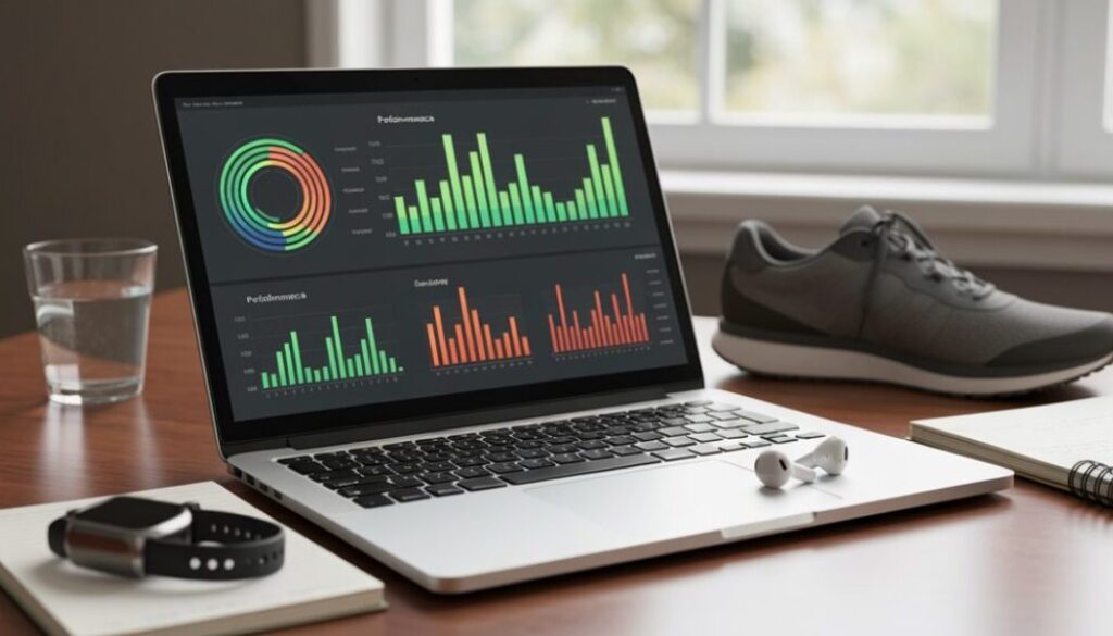 Primäre Trainingsmetriken umfassen Herzratenvariabilität, Ruheherzfrequenz, Schlafdauer, Schlafqualitätswerte, Leistungsoutput, Tempo, Kadenz und wahrgenommene Anstrengungsbewertungen. Tragbare Geräte liefern kontinuierliche physiologische Datenströme, während manuelle Eingaben subjektive Belastungseinschätzungen erfassen.
